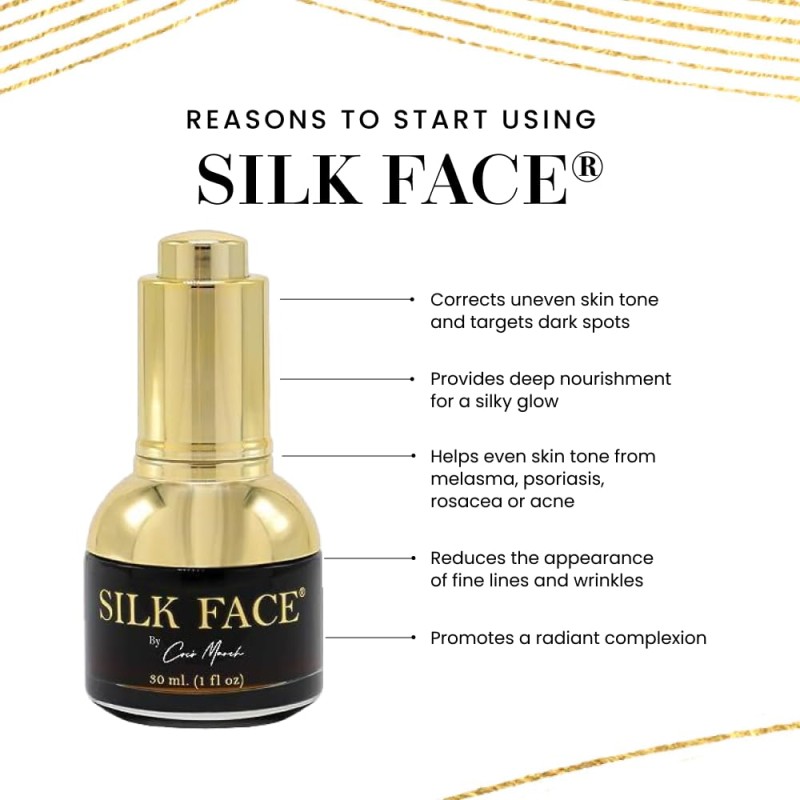 Silk Face® Serum - Pure Silk Extracts - Luxurious Illumination And Immediate Results - Quickly Reduces Fine Lines - Evens Out Skin Tone - 100% Natural And Hypoallergenic - 1 fl oz (30 ml) - Elixir By Cocó March.