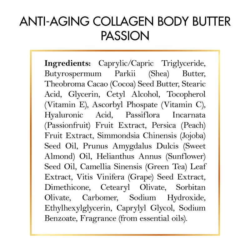 • Contiene ingredientes que combaten el envejecimiento: Esta manteca corporal contiene agentes como colágeno, ácido hialurónico y vitaminas para ayudar a mantener una apariencia más juvenil de la piel.