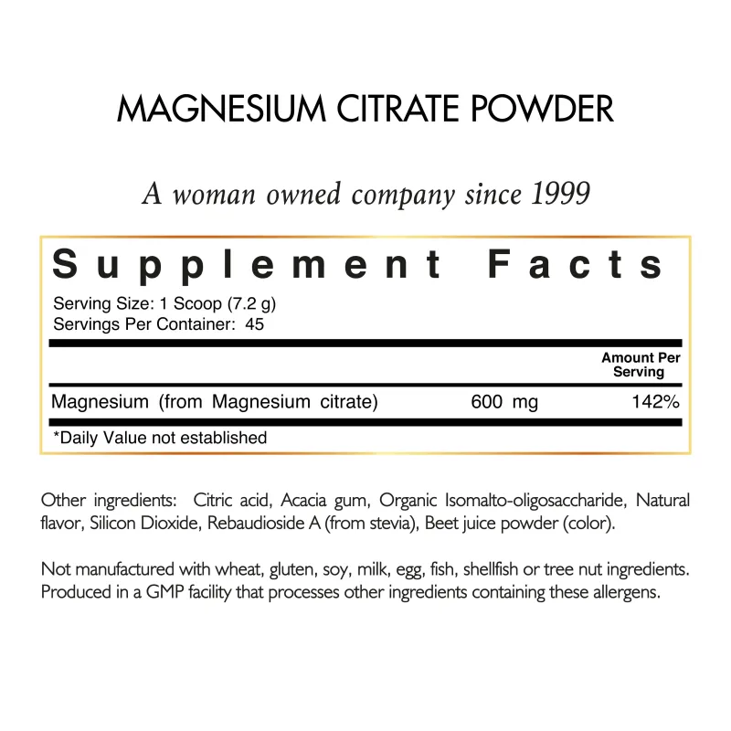 - Alivio del estreñimiento ocasional: El citrato de magnesio es el magnesio preferido para el estreñimiento, ya que aumenta la cantidad de agua en los intestinos para favorecer movimientos intestinales saludables y más regulares.