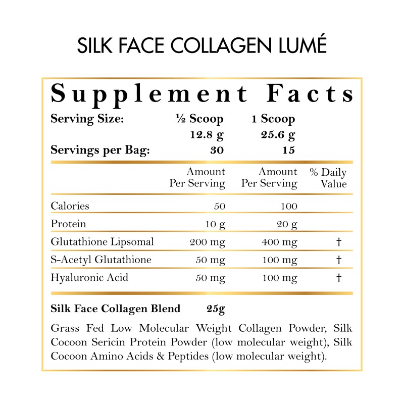 Silk Face Collagen Lumé – Colágeno en Polvo con Glutatión y Ácido Hialurónico – Apoya la Elasticidad, Hidratación y Luminosidad de la Piel – Suplemento de Belleza y Bienestar – 20g de Proteína por Porción – 350g (12.35 oz) – por Cocó March