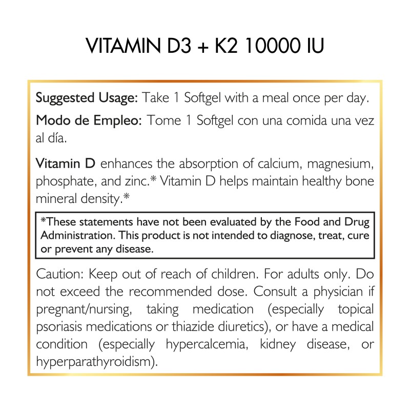 Precaución: Mantener fuera del alcance de los niños. Solo para adultos. No exceda la dosis recomendada. Consulte a un médico si está embarazada/amamantando, tomando medicamentos (especialmente tópicos para la psoriasis o diuréticos tiazídicos) o si tiene una condición médica (especialmente hipercalcemia, enfermedad renal o hiperparatiroidismo).